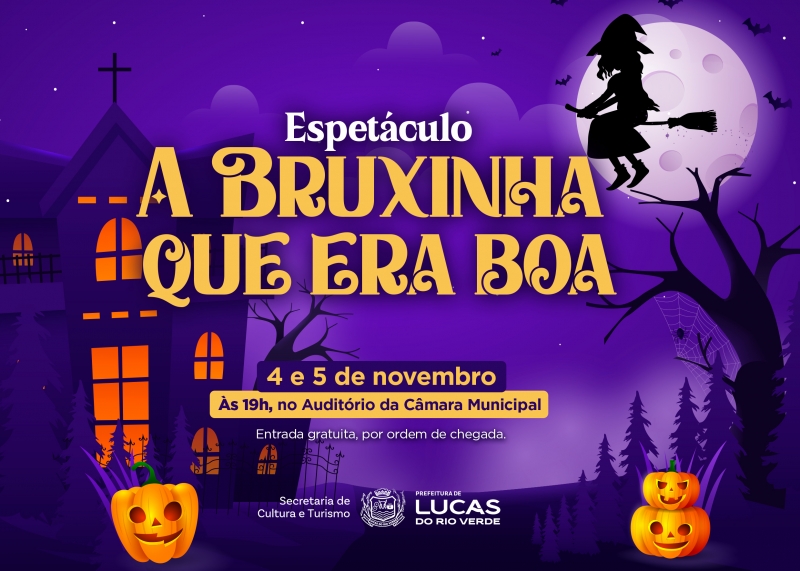 “Era uma vez, lá no fundo da floresta, na Escola de Aprendizado de Bruxarias”… “A Bruxinha que Era Boa”, uma adaptação do clássico infantil de Maria Clara Machado, promete encantar o público luverdense na próxima semana. Em duas apresentações, nos dias 4 e 5 de novembro, às 19h, no auditório da Câmara de Vereadores, o espetáculo conta a história da bruxinha Ângela, que é presa na Torre de Piche por não gostar de fazer maldades.