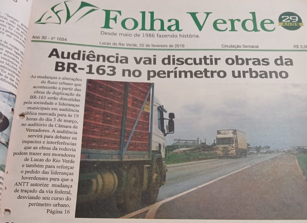 A partir das 19h desta quarta-feira, 29 de abril, a Câmara Municipal de Lucas do Rio Verde realiza uma audiência pública para debater a travessia urbana da BR-163 e a implantação do anel viário no município. O encontro será no auditório da Casa de Leis e contará com a participação de autoridades locais, regionais e estaduais, além de representantes da concessionária Nova Rota do Oeste.