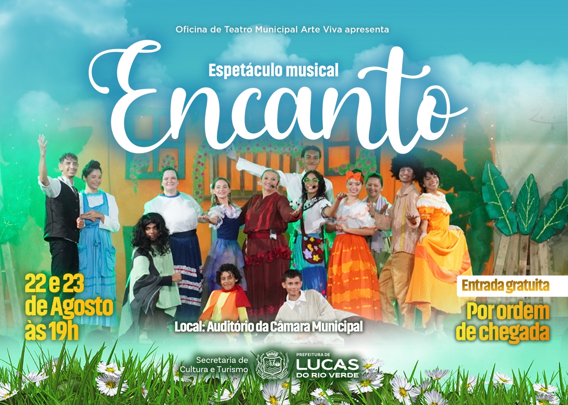 Encanto é o nome do espetáculo que a Prefeitura de Lucas do Rio Verde, por meio da Secretaria de Cultura e Turismo, oferece à comunidade neste final de semana, dias 22 e 23 de agosto, no auditório da Câmara Municipal, com início às 19h.