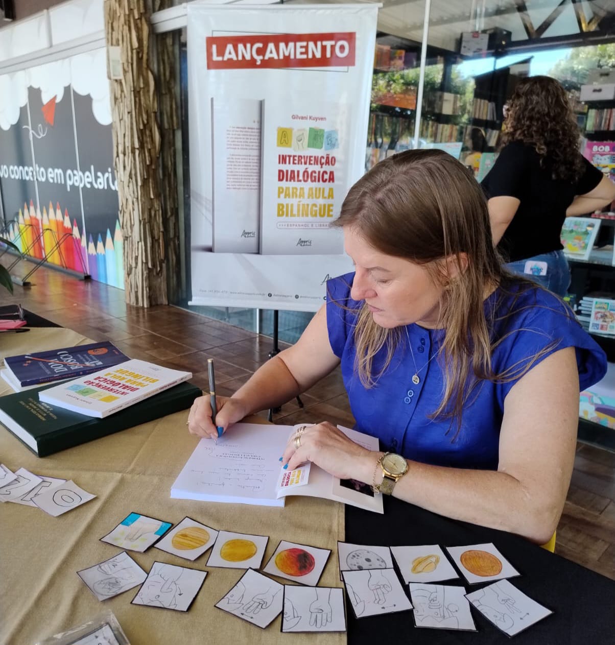 Depois de nove anos de preparação, planejamento, espera, sonho adiado e luta contra a própria ideia de desistir da publicação, a professora de Espanhol, Gilvani Kuyven, apresenta seu livro “Intervenção Dialógica Para Aula Bilíngue: Espanhol e Libras”, que lança um novo olhar sobre o aluno surdo, inserido no cotidiano escolar.