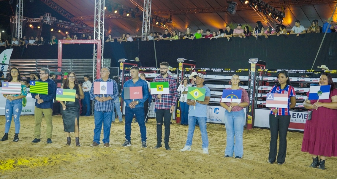 A entrada de representantes dos 26 estados brasileiros e do Distrito Federal temperou de emoção a abertura da Expolucas 2025. Carregando a bandeira de seu estado de origem, cada luverdense manifestou o sentimento de orgulho em fazer parte da história de um município que reúne pessoas e culturas de todas as partes do Brasil